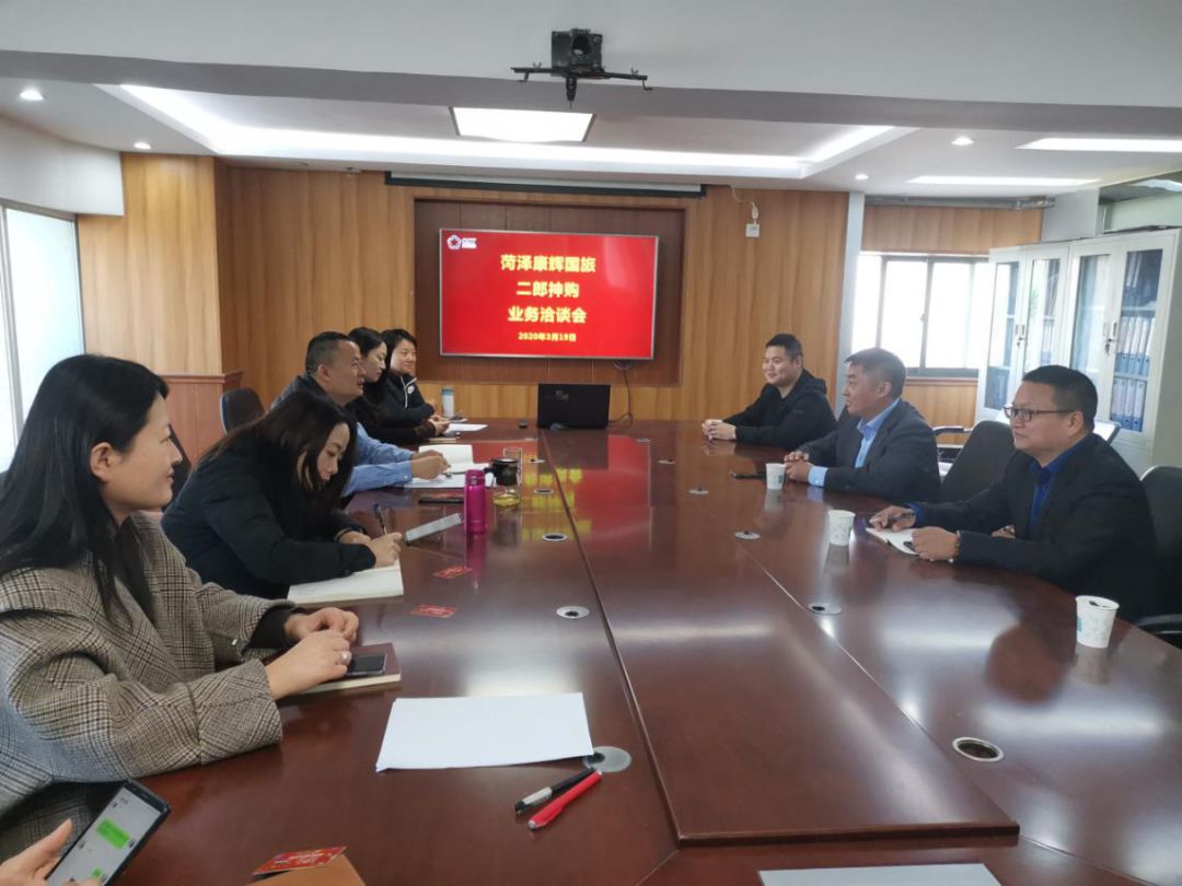 3月19日上午菏泽金霸电器董事长孙军利带领二郎神购相关人员,到菏泽康辉国旅进行业务交流对接,公司总经理侯宪会及相关人员参加了洽谈。